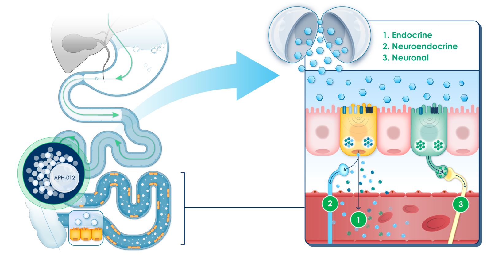 In a Phase 1 trial in individuals with obesity, targeted release of glucose with APH-012 induced therapeutically relevant release of a broad spectrum of enteric hormones, including glucagon-like-peptide 1 (GLP-1), peptide tyrosine-tyrosine (PYY), glicentin and oxyntomodulin (OXM) among others.